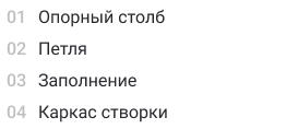 Изделия выполняют из каркаса, столбов, и наполняют створки выбранным заказчиком материалом. Каркас создан из трубы прямоугольной или квадратной. Для столбов подходит профиль 100х100 мм или 80х80 мм.
